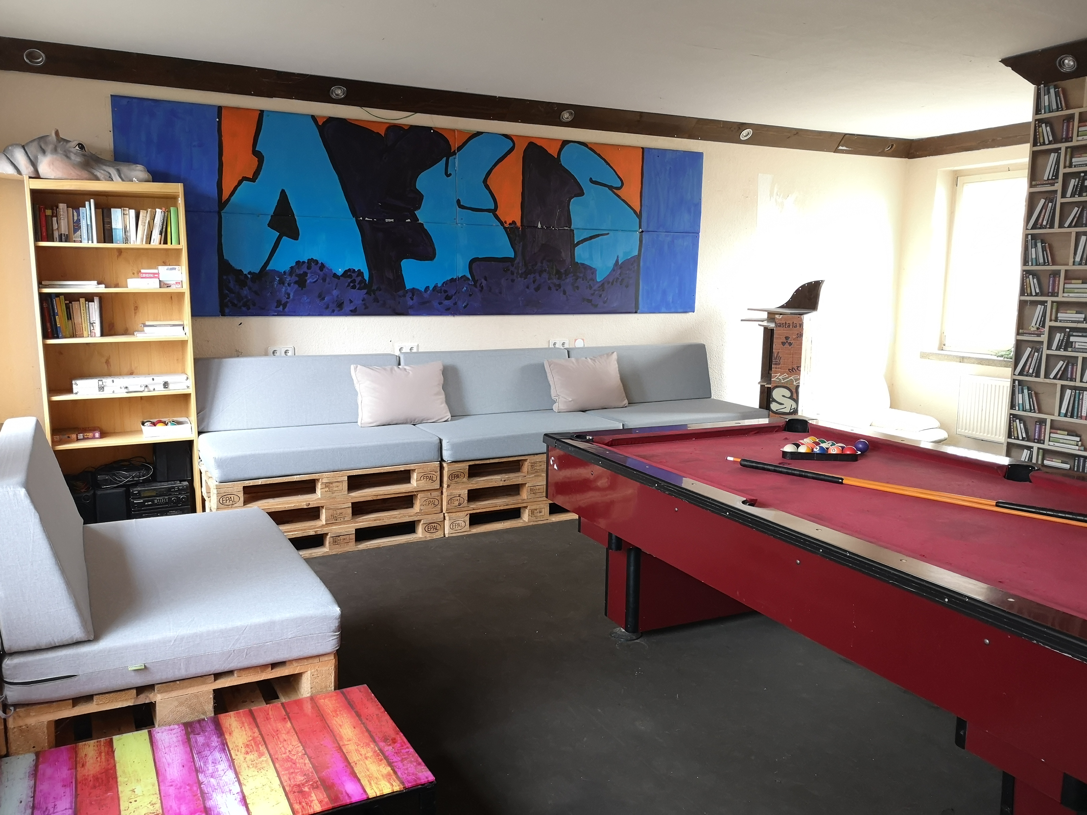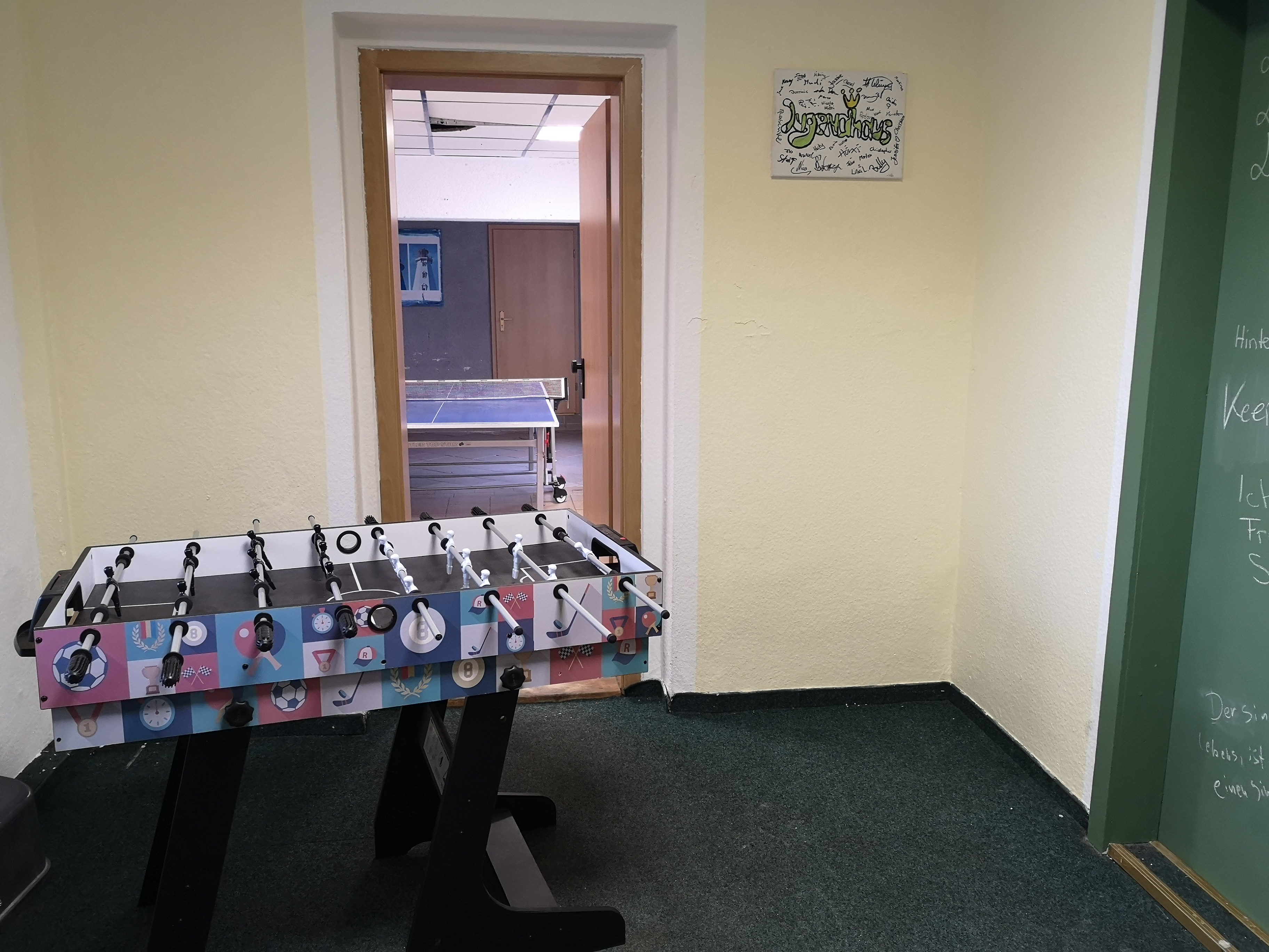 Unser Haus bietet dir einen Tischtennisraum, ein Jugendcafé mit Billardtisch, eine kleine Küche für gemeinsame Koch- und Backevents und einen Kreativraum. Versuch dich beim Töpfern, Laubsägen oder vielfältigen weiteren Bastelangeboten. Auch unser Kickbox- und Fitnessraum steht allen Teenies offen. Im Sommer kann unser kleiner Garten mit Sitzecke zum Grillen und chillen genutzt werden.
